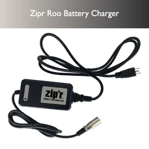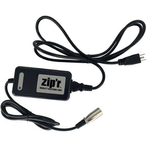 Este cargador es compatible con los scooters de movilidad Zip'r Roo. Incluye un cargador externo de 24 V y 2 A, un cable de alimentación de pared estándar y un conector para la batería. Una carga completa suele tardar entre 8 y 14 horas y se recomienda cargar el scooter de movilidad Zip'r Roo a plena capacidad cada vez. Las baterías se pueden cargar tanto dentro como fuera del scooter.