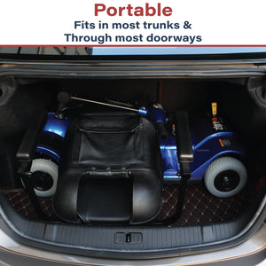 Desmonte fácilmente el scooter eléctrico de movilidad Zipr 4 Xtra en cinco piezas ligeras, plegables y transportables. Cuenta con un manillar plegable y un asiento extraíble. Portabilidad ilimitada: cabe en el maletero de vehículos estándar.