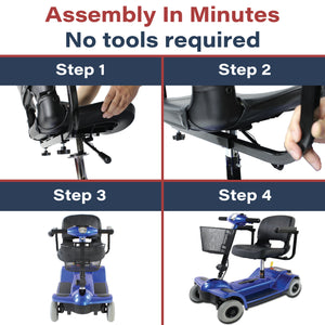 Effortlessly disassemble the Zipr 4 Traveler powered mobility scooter into five lightweight, foldable and transportable pieces. Features a folding tiller, and removable seat. Limitless portability, fits into the trunk of standard size vehicles.
