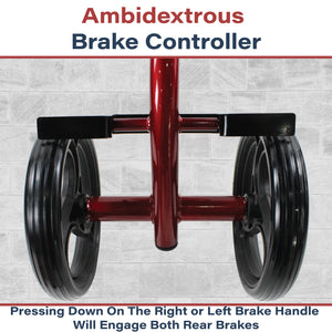 Superior comfort, connivence, maneuverability & stability compared to a crutch.  Supports both left and right leg and ankle. Helps stabilize injuries like a  broken foot, ankles and fractures. Ambidextrous brake handles allow right and left handed uses to engage both rear brakes with ease.